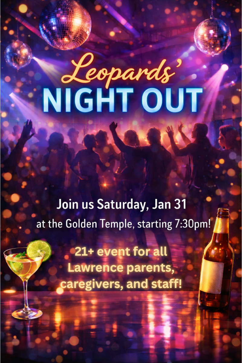 Join us for a well-deserved night out with fellow Lawrence parents, caregivers, and staff! Come to the Golden Temple starting at 7:30PM for mingling, laughs, and 21+ socializing. The PTO will provide some tasty appetizers, and the bar will be open for drink purchases. Around 9:00PM, the DJ hits start and the dance floor opens, so line up a babysitter and get ready for some dance-party fun. We can’t wait to see you there! -
