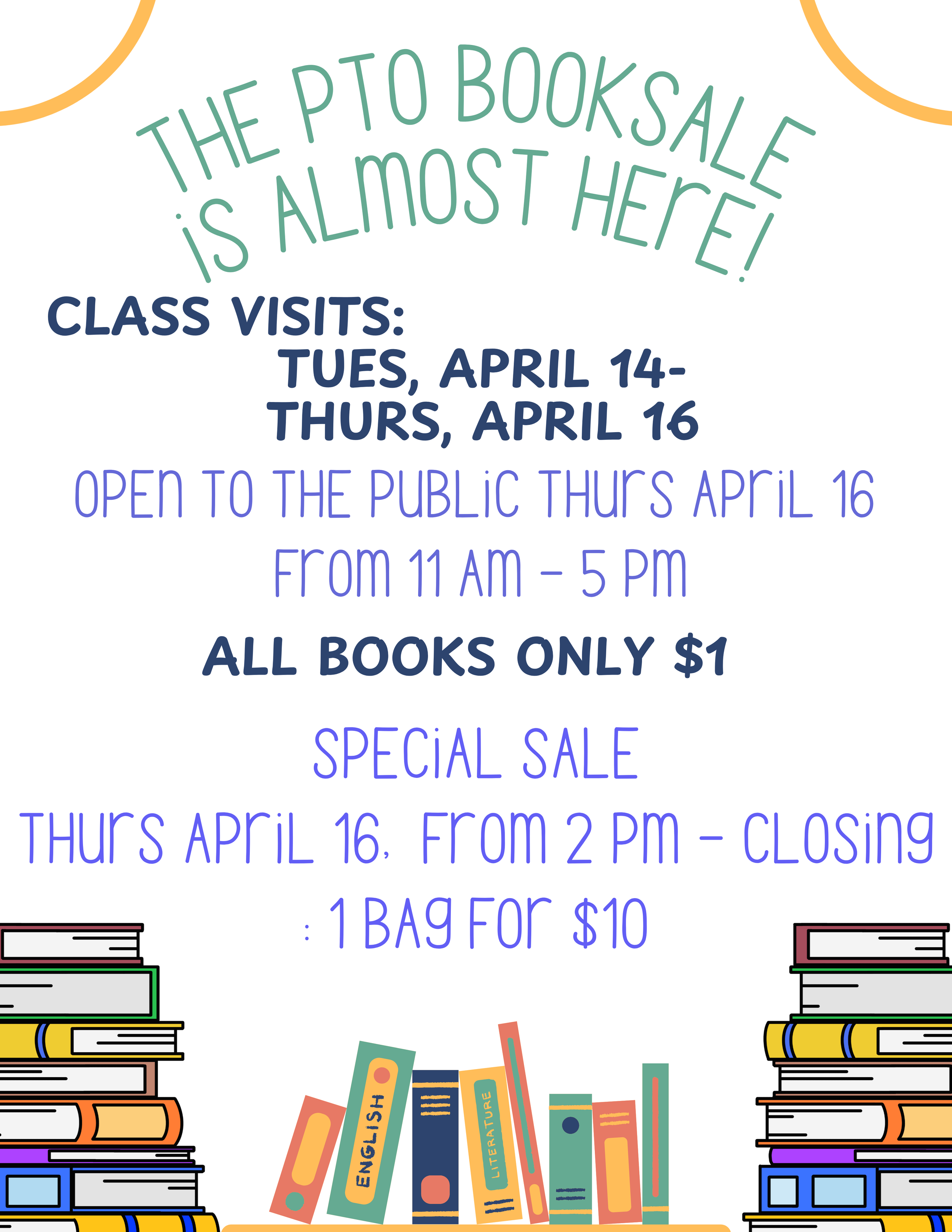 Shop the sale April 14–16—books are just $1 each. Students will visit with their classes, and the fair is open to the public on Thursday, April 16.
